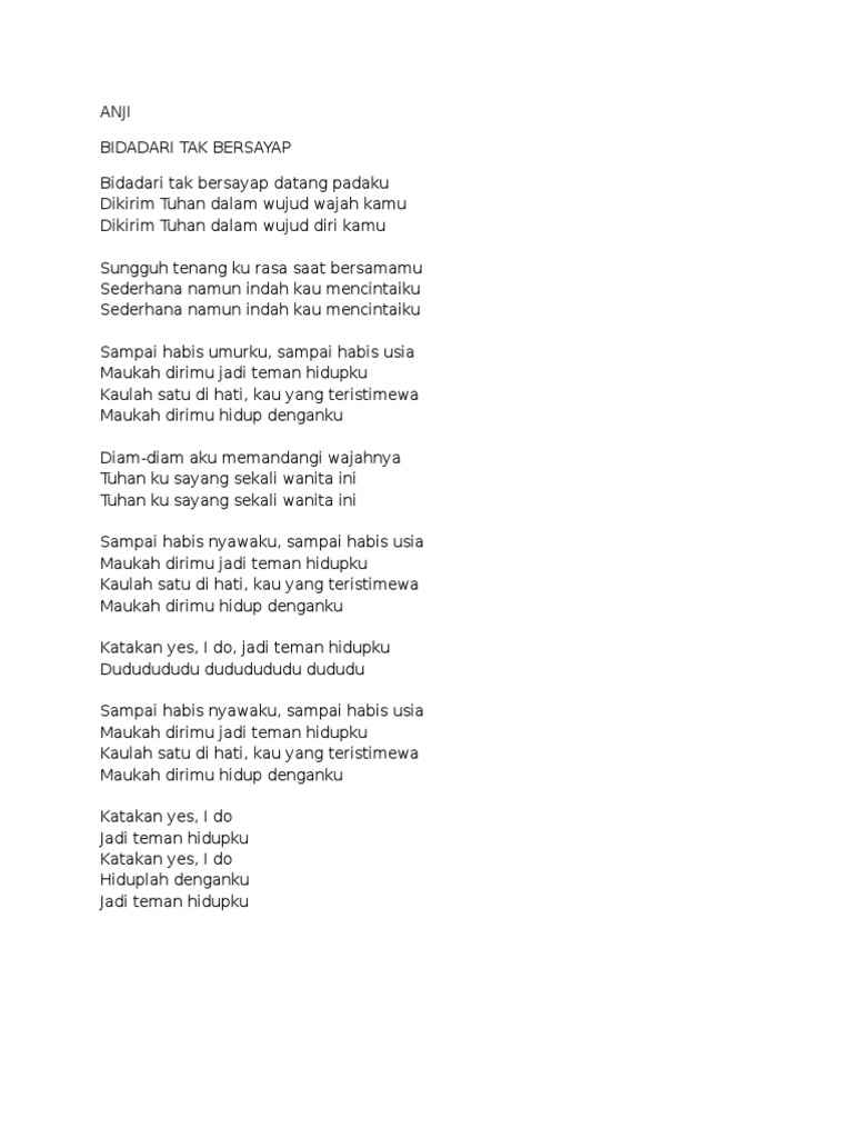 Lagu Anji Bidadari Tak Bersayap Fur Android Apk Herunterladen - Sampai habis umurku, sampai habis usia maukah dirimu jadi teman hidupku kaulah satu di hati, kau yang teristimewa maukah dirimu hidup denganku.